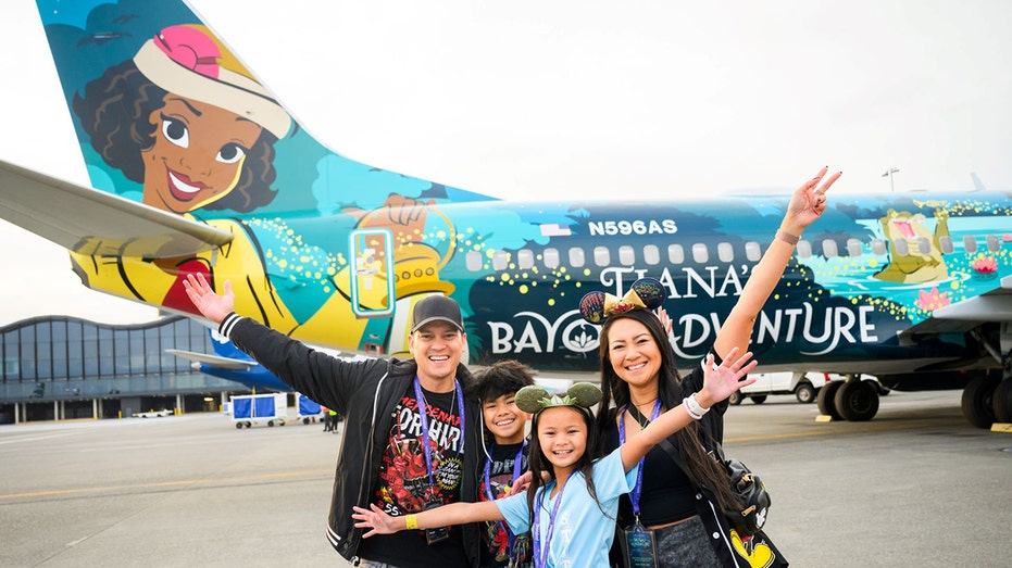 Some of the first guests on Alaska Airlines’ “Tiana’s Bayou Adventure Flyer.” (Alaska Airlines / Fox News)