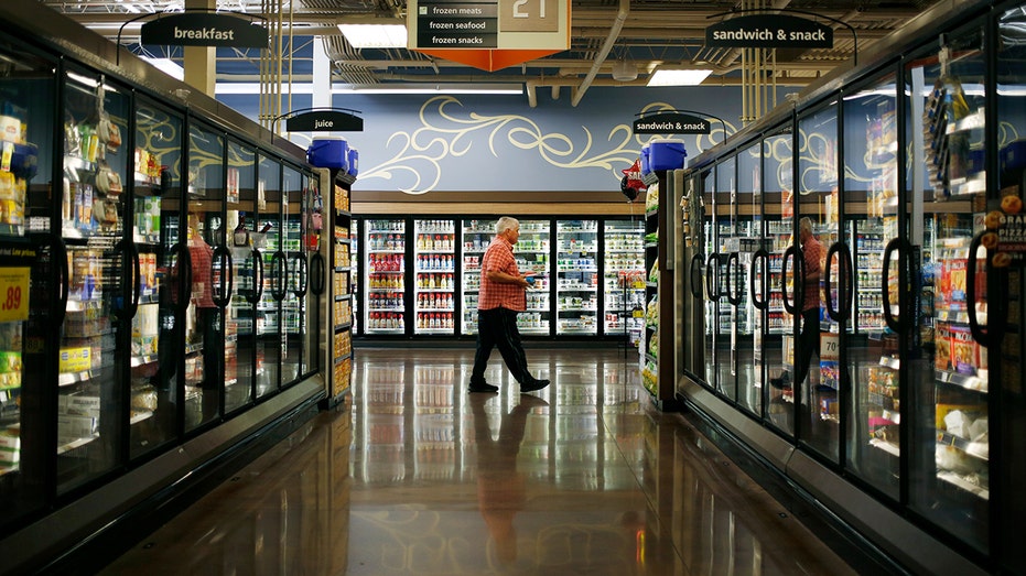 A customer walks past the frozen food aisle inside a Kroger grocery store in Louisville, Kentucky, on June 14, 2017. (Luke Sharrett/Bloomberg / Getty Images)