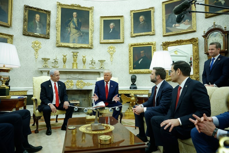 When he sits down with world leaders in the Oval Office, they are surrounded with ostentatious symbols of his power and wealth, all in gold.