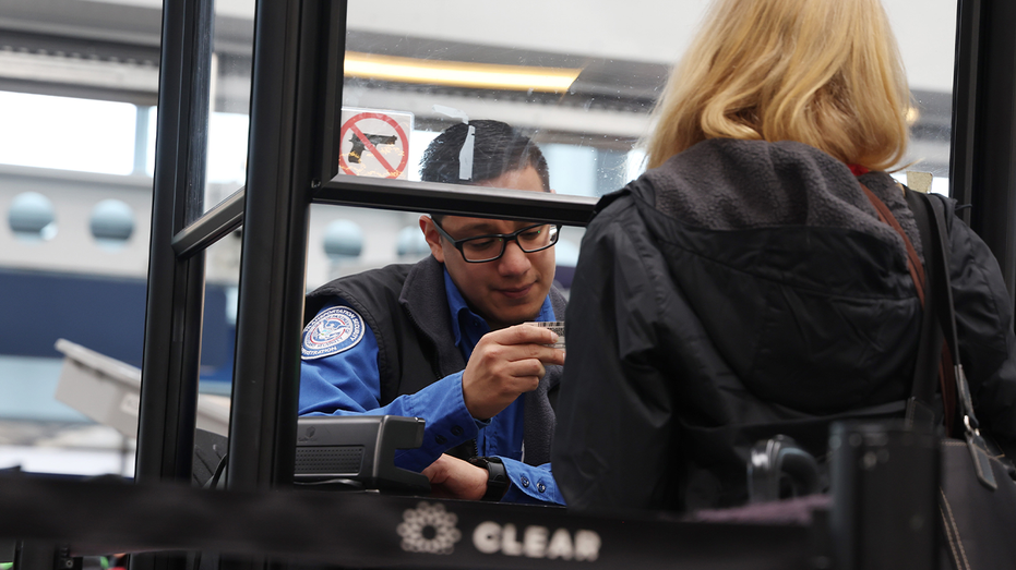 A TSA security officer checks a passenger’s ID in Terminal 1 at Chicago O’Hare International Airport, on April 3, 2024. (Stacey Wescott/Chicago Tribune/Tribune News Service via Getty Images / Getty Images)